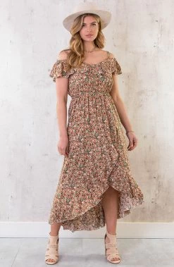 Details: elastieken band, ruches, elastiek, bloemenprint, offshoulder en verstelbare spaghettibandjes Materialen: 65% Viscose, 35% Katoen