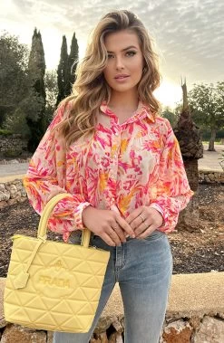 Details: elastieken band, lange mouwen, bloemenprint, offshoulder en elastiek bij de mouwen Materiaal: 100% Viscose