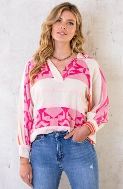 Details: v-hals, lange mouwen, oversized, knoopje bij de mouwen en ballonmouwen Materiaal: 100% Katoen