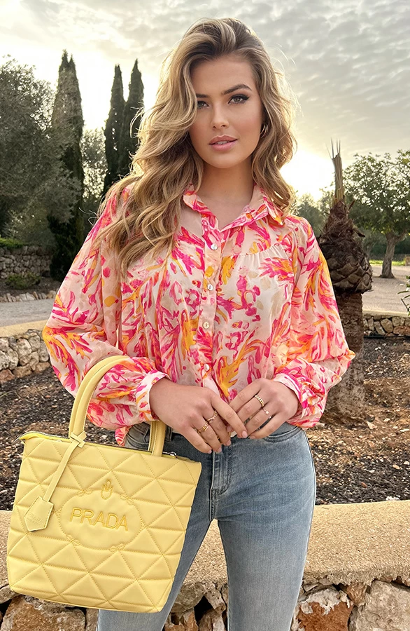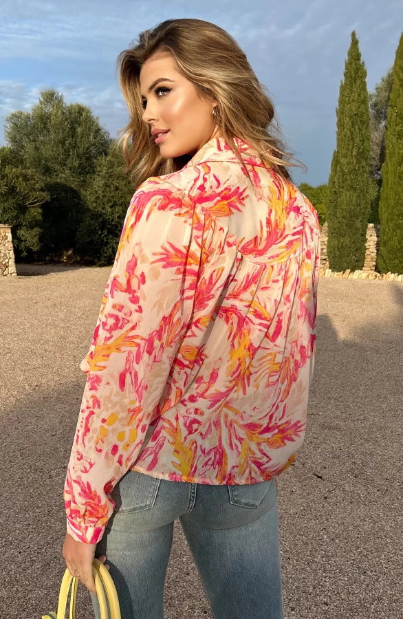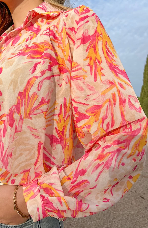 Product: Deze super vrolijke blouse wil je toch hebben?! Deze blouse met print valt oversized en is voorzien van een knoopsluiting.