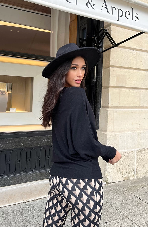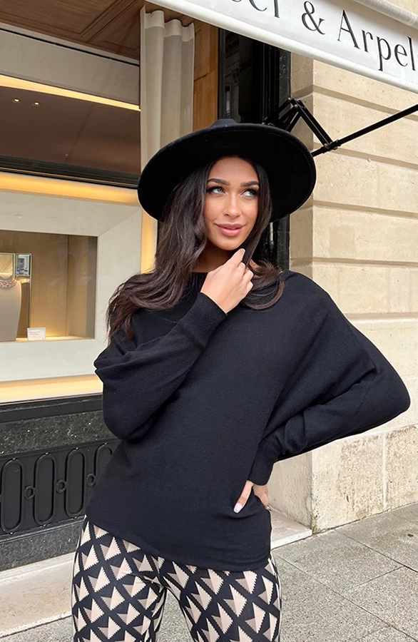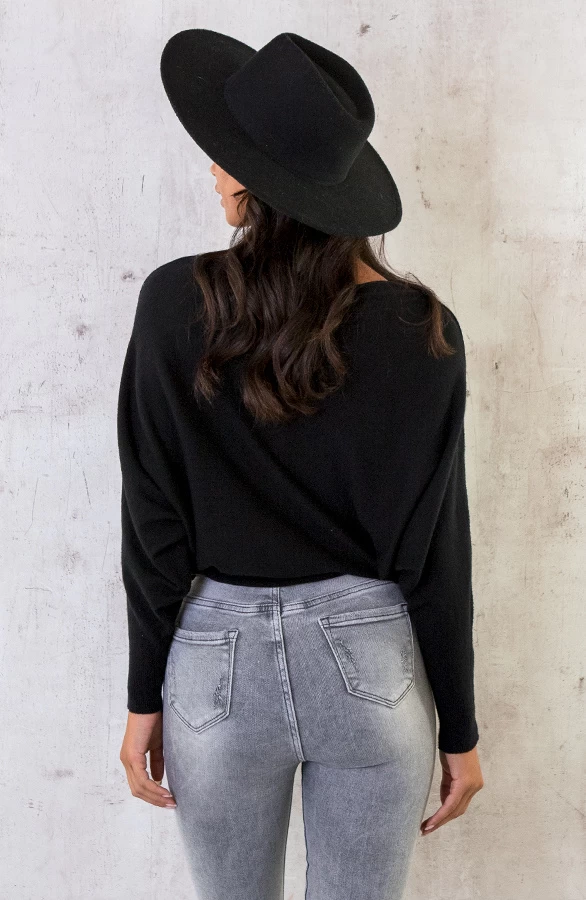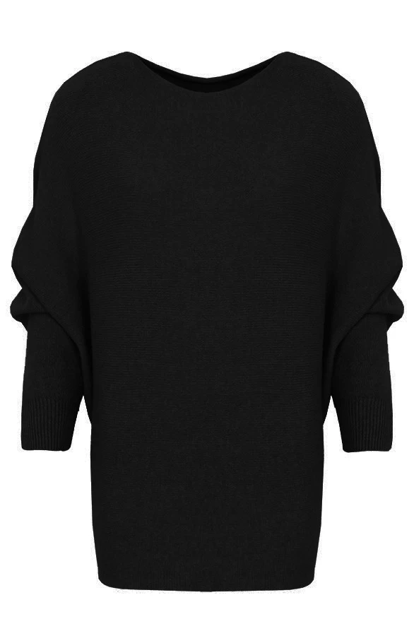 Product: Deze zwarte trui met vleermuismouwen is de perfecte basic voor jouw garderobe. Verkrijgbaar in verschillende Musthave kleuren!