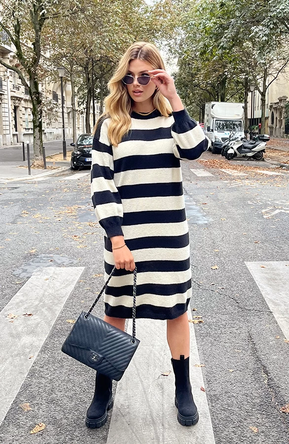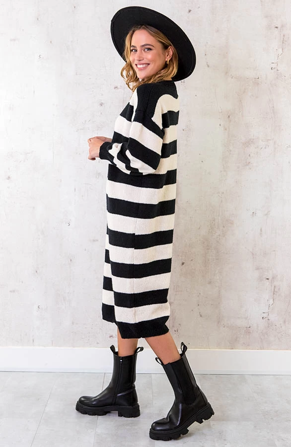 Product: Deze te leuke jurk mag niet ontbreken in je kledingkast! De jurk is voorzien van strepen en is gemakkelijk te combineren.
