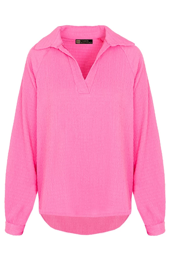 Product: YAY! Onze bestseller blouse is nu ook verkrijgbaar in het fuchsia! De oversized smocked blouse is een aanwinst voor jouw garderobe!