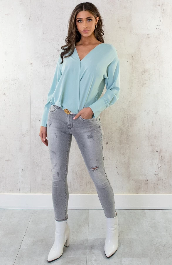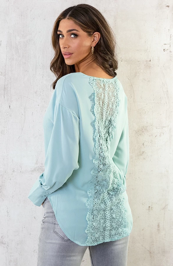 Product: Ohmy! Deze prachtige blouse wil je hebben! De blouse is voorzien van een overslag aan de voorkant en kanten details op de achterkant. De voorkant van de blouse is korter dan de achterkant.