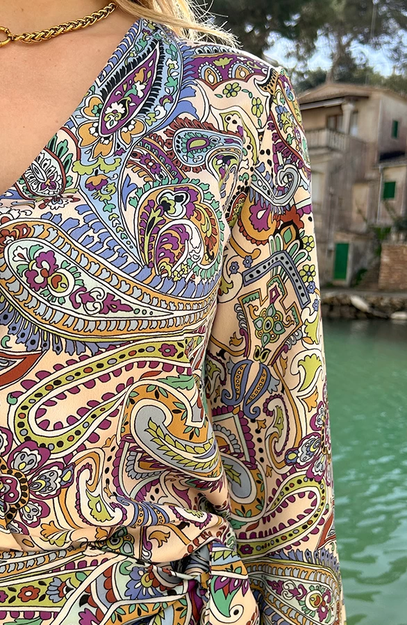 Product: Deze té leuke blouse mag niet ontbreken aan jouw garderobe! De blouse is voorzien van een paisleyprint en flared mouwen. Tip: Combineer het met de bijpassende skort!