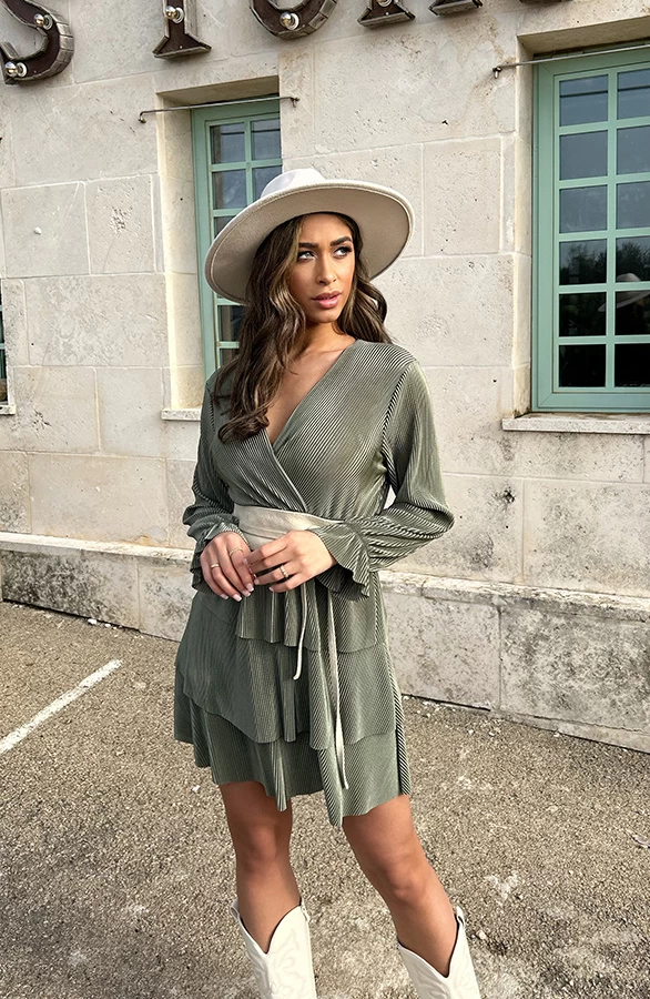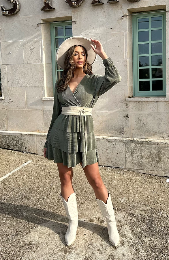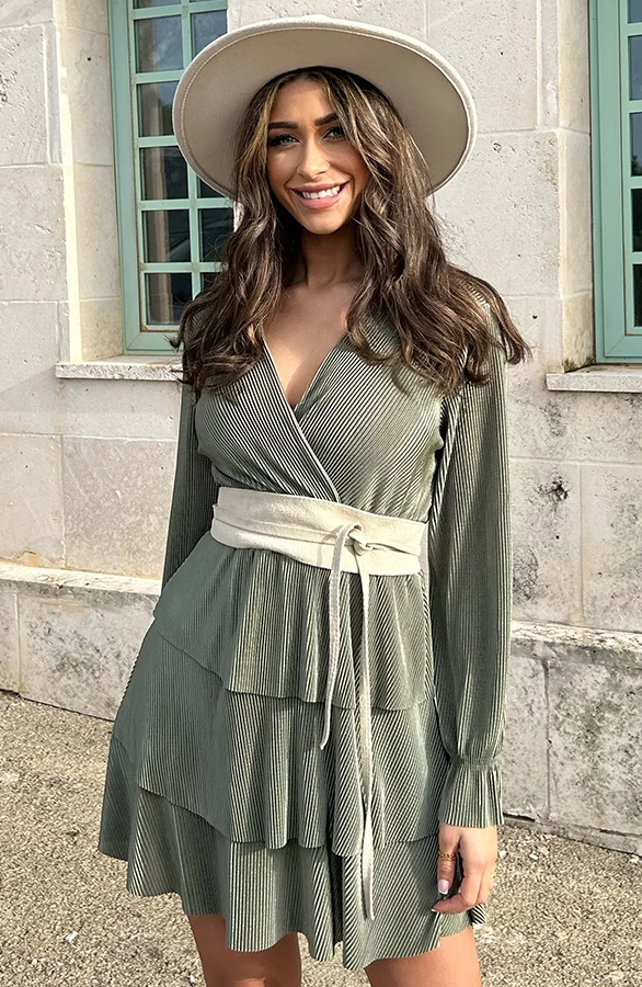 Product: We LOVE army! Dit ribstof jurkje is perfect voor een feestje of andere leuke gelegenheid! Voorzien van elastiek in de taille en bij de mouwen.