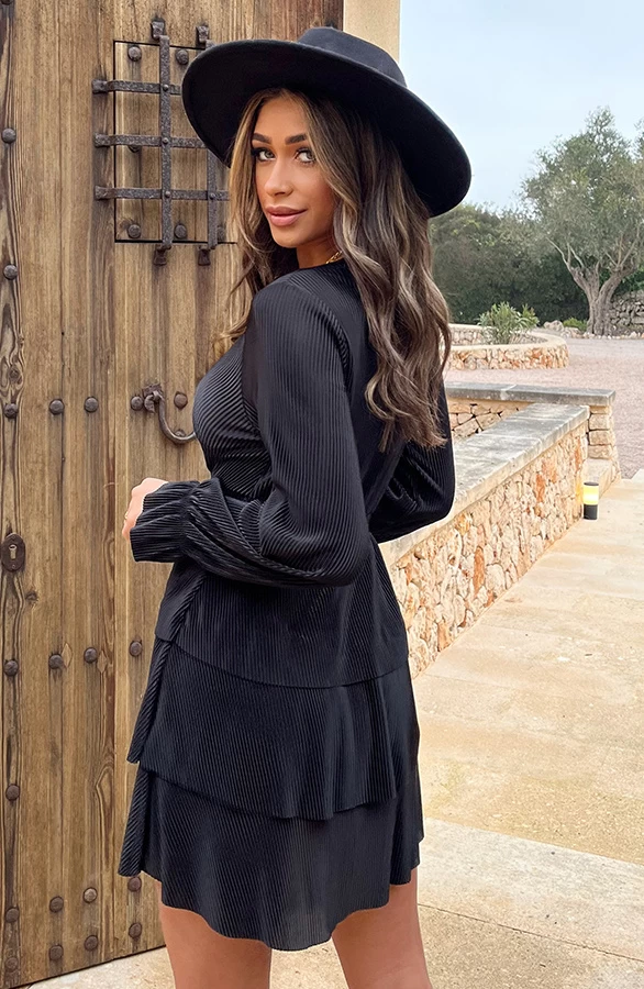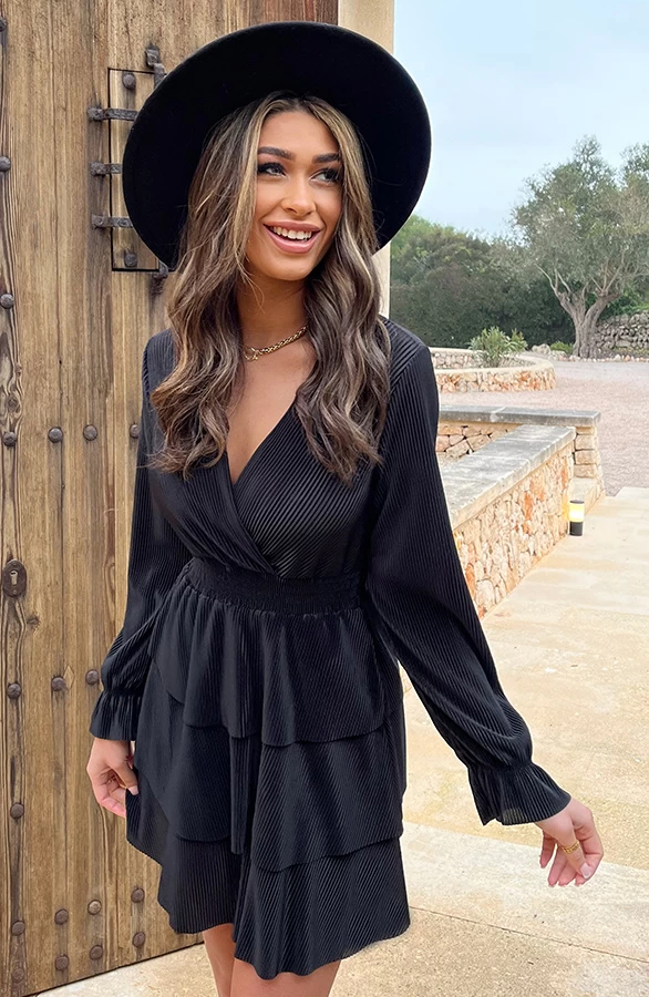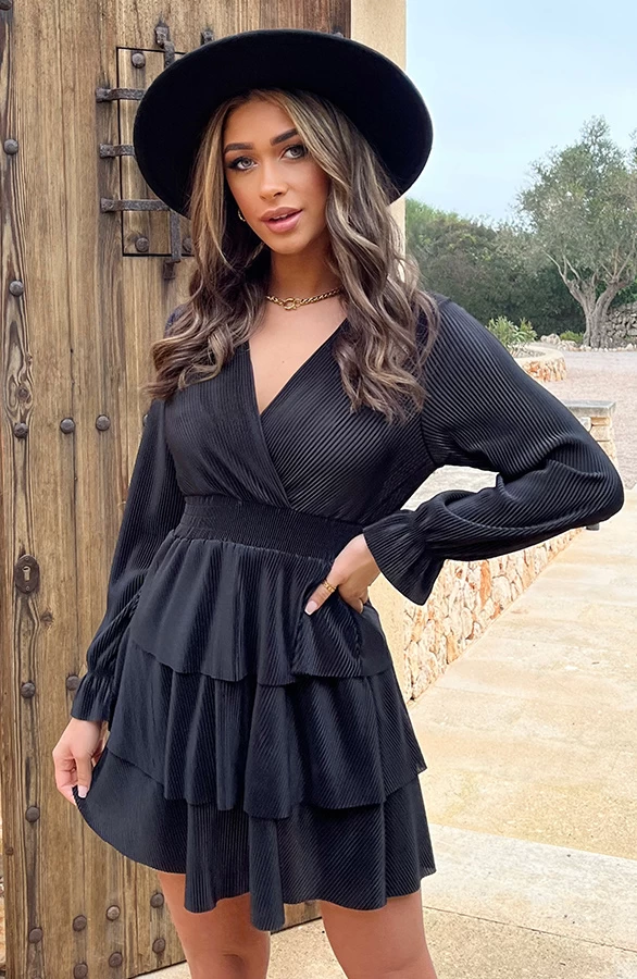 Product: Little black dress! Dit is hét perfecte jurkje voor welke gelegenheid dan ook! Het a-lijn jurkje met laagjes is voorzien van plissé en elastiek in de taille.