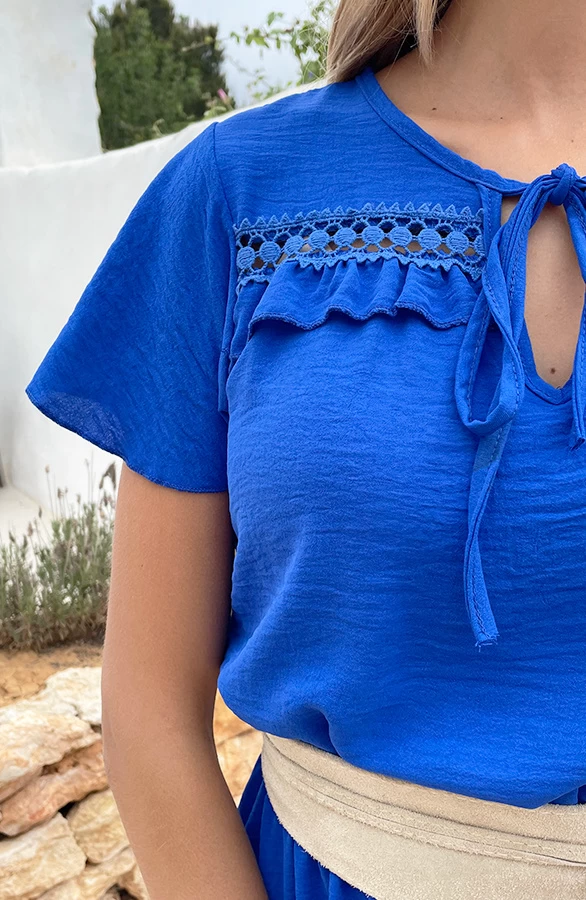 Product: In deze kobalt kleurige jurk mag zeker jij gezien worden! De jurk is voorzien van een v-hals en vleermuismouwen.