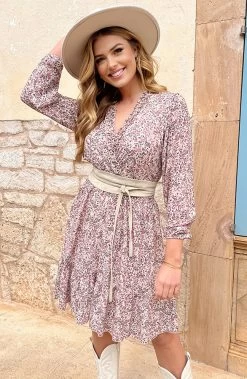 Product: Oohlala! Hoe cute is dit beige jurkje met bloemenprint?! Het jurkje is voorzien van ruches en een elastieken band in de taille.