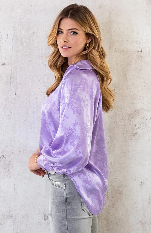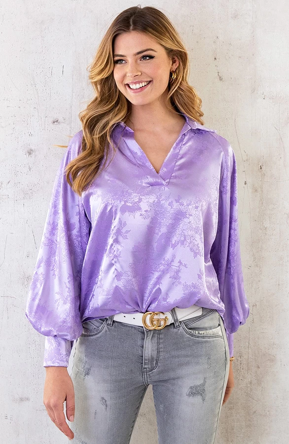 Product: Ohmy! Deze pretty blouse is een echte eyecatcher! De bloemenprint blouse is voorzien van een glanzende stof en een oversized pasvorm.