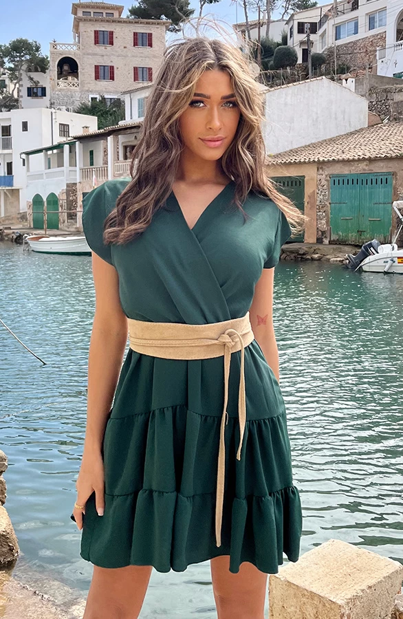 Product: We’ve got it! Het perfecte jurkje voor welke gelegenheid dan ook! Je shopt dit v-hals jurkje met bijpassend lint om te strikken in de meerdere kleuren!