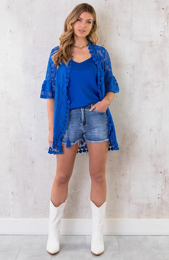 Product: WAUW! Hoe mooi is deze kobaltblauwe top?! Deze trendy kleur mag dit seizoen niet ontbreken in jouw garderobe! De spaghetti top is voorzien van voering ter hoogte van de borst.