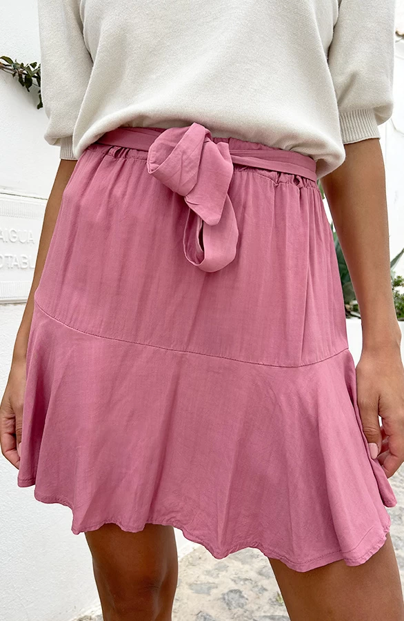 Product: Wij zijn helemaal weg van deze roze broekrok! Het skortje is gemakkelijk te combineren met jouw favoriete items en is voorzien van stretch en een lint om te strikken.