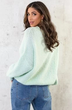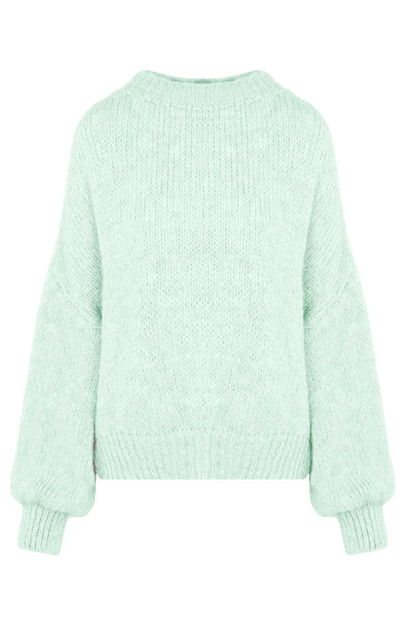 Product: Een mint groen item mag niet ontbreken in jouw garderobe! Deze fijne gebreide trui zit heerlijk en is voorzien van stretch.