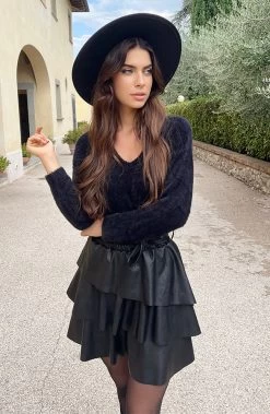 Product: Girls! Hoe heerlijk is deze zachte zwarte trui?! Deze mag zeker niet ontbreken in jouw garderobe. verkrijgbaar in meerdere kleuren!
