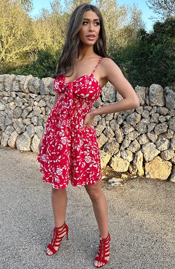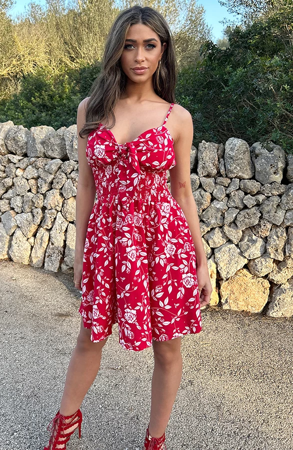 Product: Dit is de perfecte jurk voor elke gelegenheid! De jurk is voorzien van een rozen print en verstelbare spaghettibandjes.