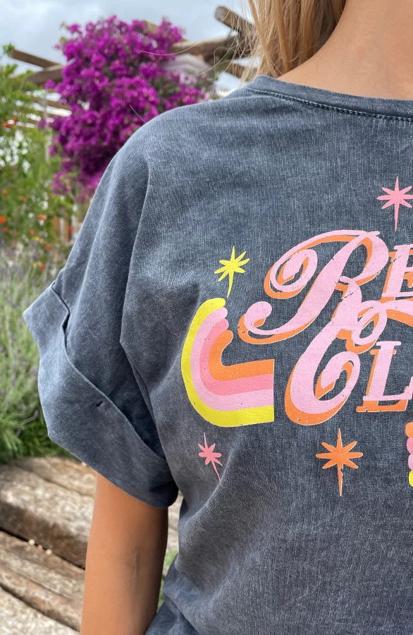 Product: Deze stonewash top is ontzettend leuk! Het T-shirt is voorzien van een ronde hals en een super toffe print op de voorkant!
