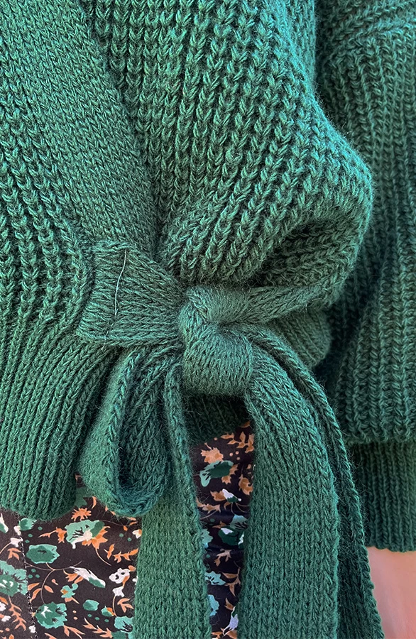 Details: v-hals, lange mouwen, lint om te strikken en gebreid Materiaal: 100% Polyacryl