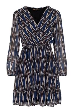 Details: v-hals, lint om te strikken, onderjurk, elastiek in de taille en elastiek bij de mouwen Materialen: 48% Viscose, 50% Polyester, 2% Elastaan