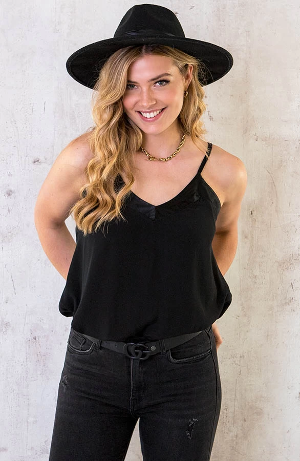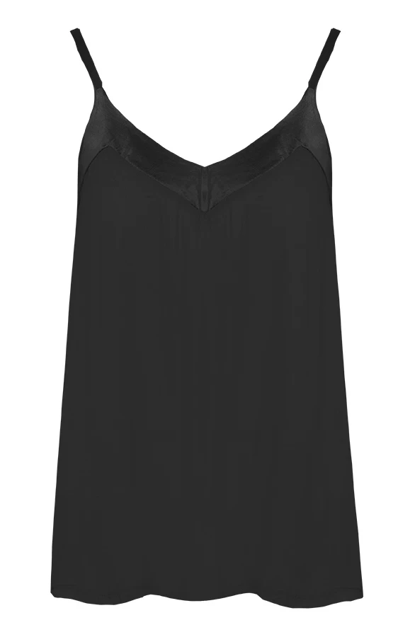 Details: v-hals, glanzende stof, elastiek en verstelbare spaghettibandjes Materiaal: 100% Viscose