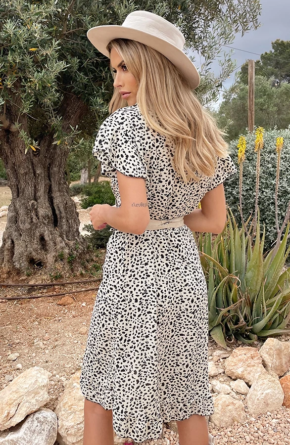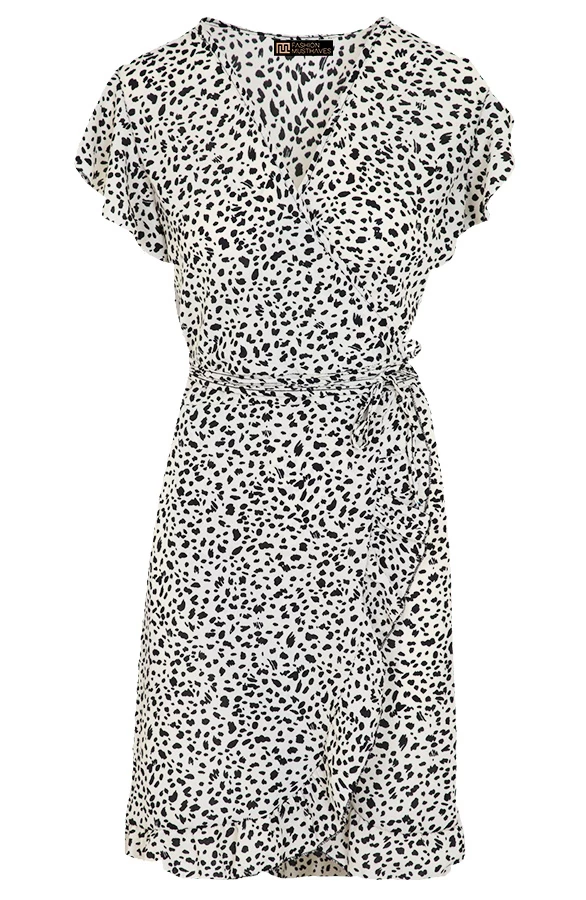 Product: Cheetahlovers opgelet! Met dit overslag jurkje steel jij de show! Het jurkje is voorzien van korte mouwen en een v-hals.