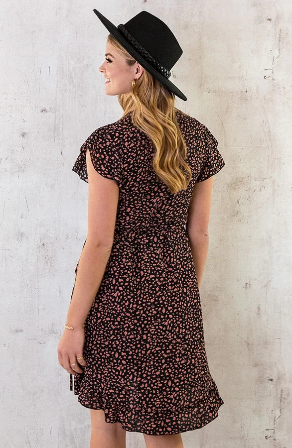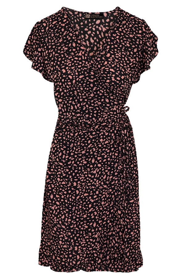 Product: Steel de show met dit te gekke cheetahprint jurkje! Het korte jurkje met ruches en v-hals is te shoppen in meerdere kleuren en prints!