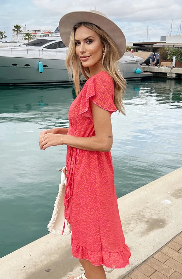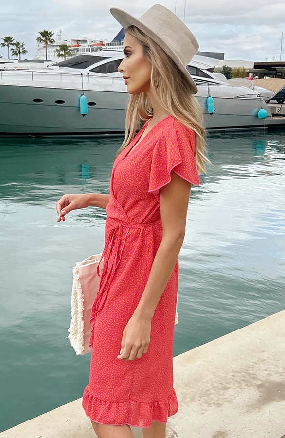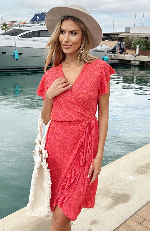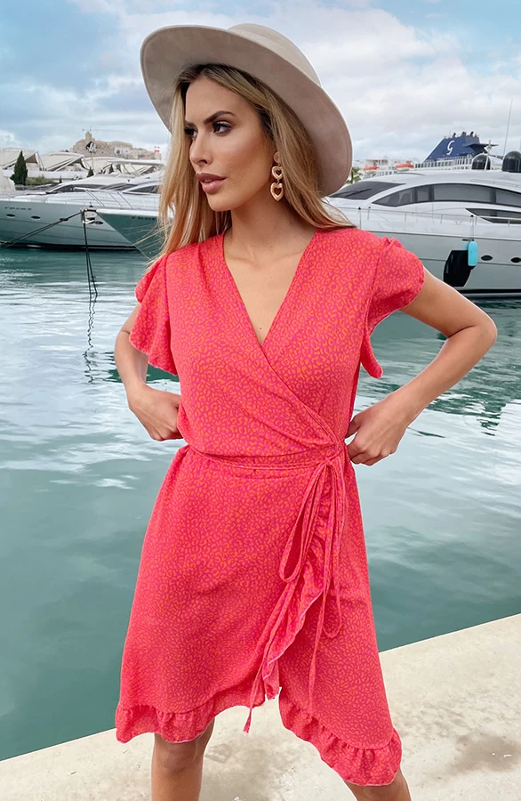 Product: Oh-my! Dit té gekke jurkje met leopard print vliegt de shop uit! Het overslag jurkje is voorzien van korte mouwen, een v-hals en een lint om te strikken.